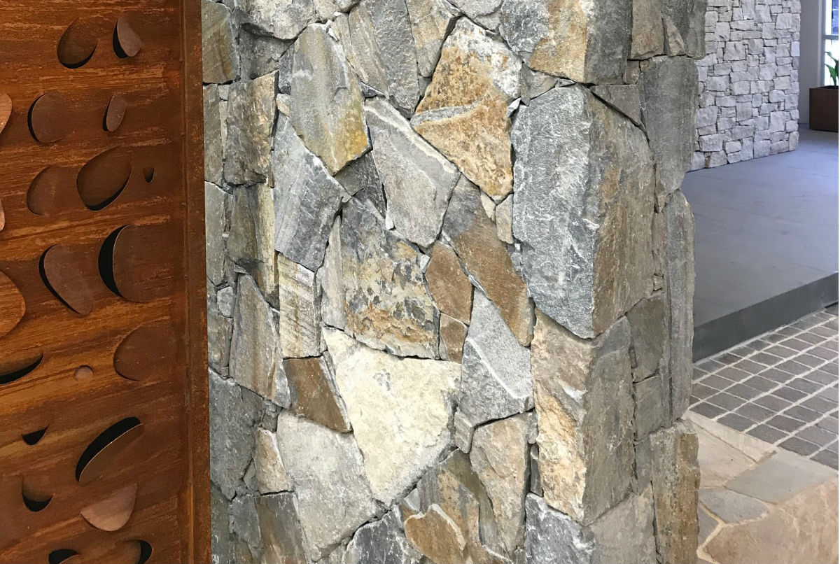 Avoca is a free-form walling offering a solid rugged appearance in an easy to install veneer format.  It presents a textured mix of brown and grey tones.