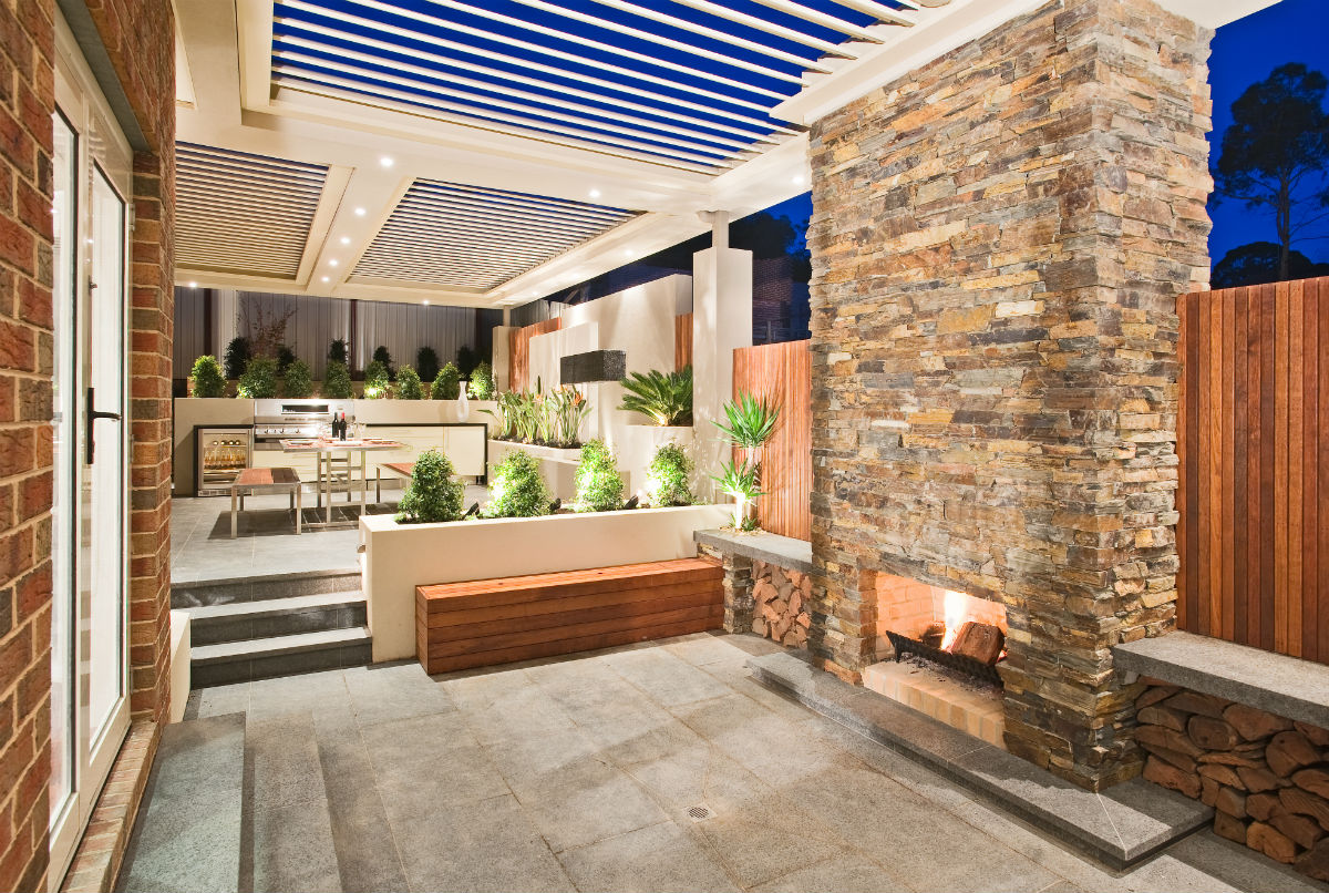 Split slate with charcoal and rust colouring to complement darker stone paving.