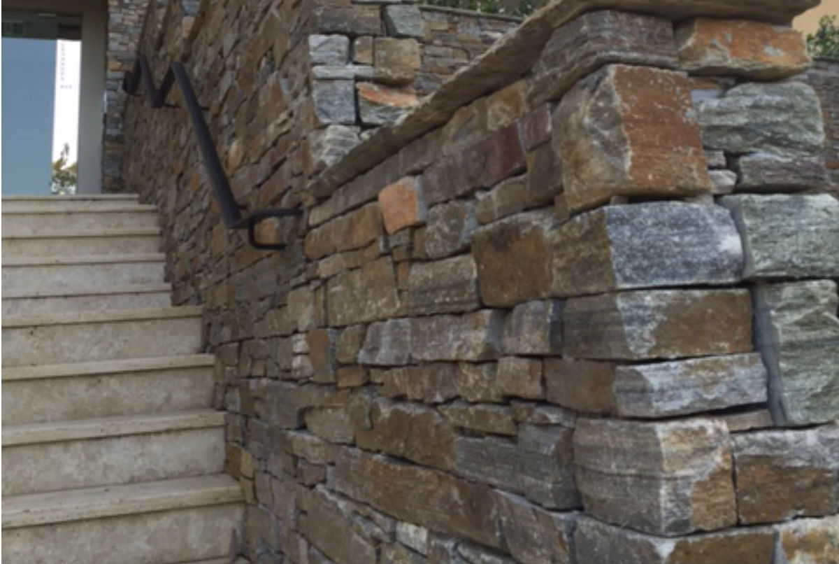 The Kakadu Ledgestone NEW ONE PIECE SHAPE Corners are hand split on the surface and sides, sawn on the bottom surface and then manufactured as an L Shaped 90 degree corner with a 200mm return on one end and a 350mm return on the other. By alternating the corners as you lay them a random appearance is created, providing you with the best possible detailing on any external corners of your wall.