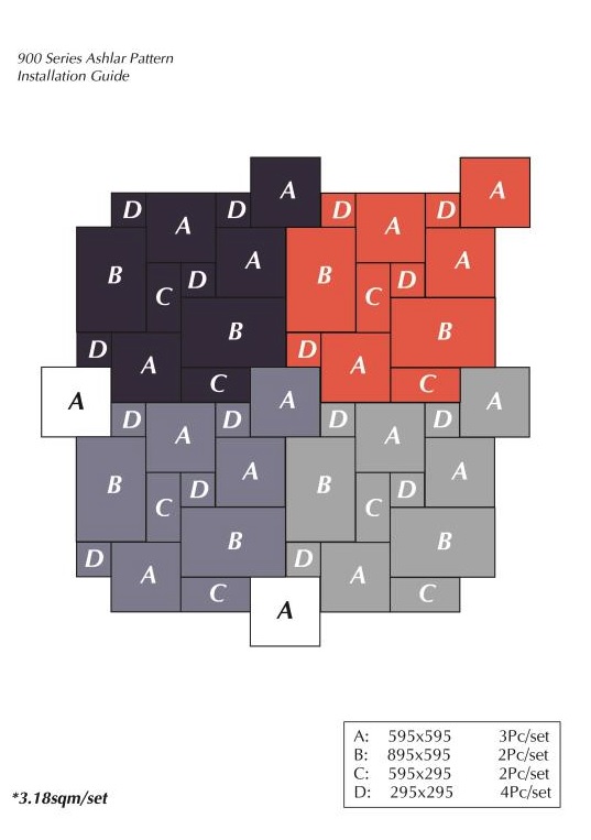 Our ashlar pattern is designed so that it can be laid with a 3-5 mm grout joint with the grout lines always lining up from set to set.