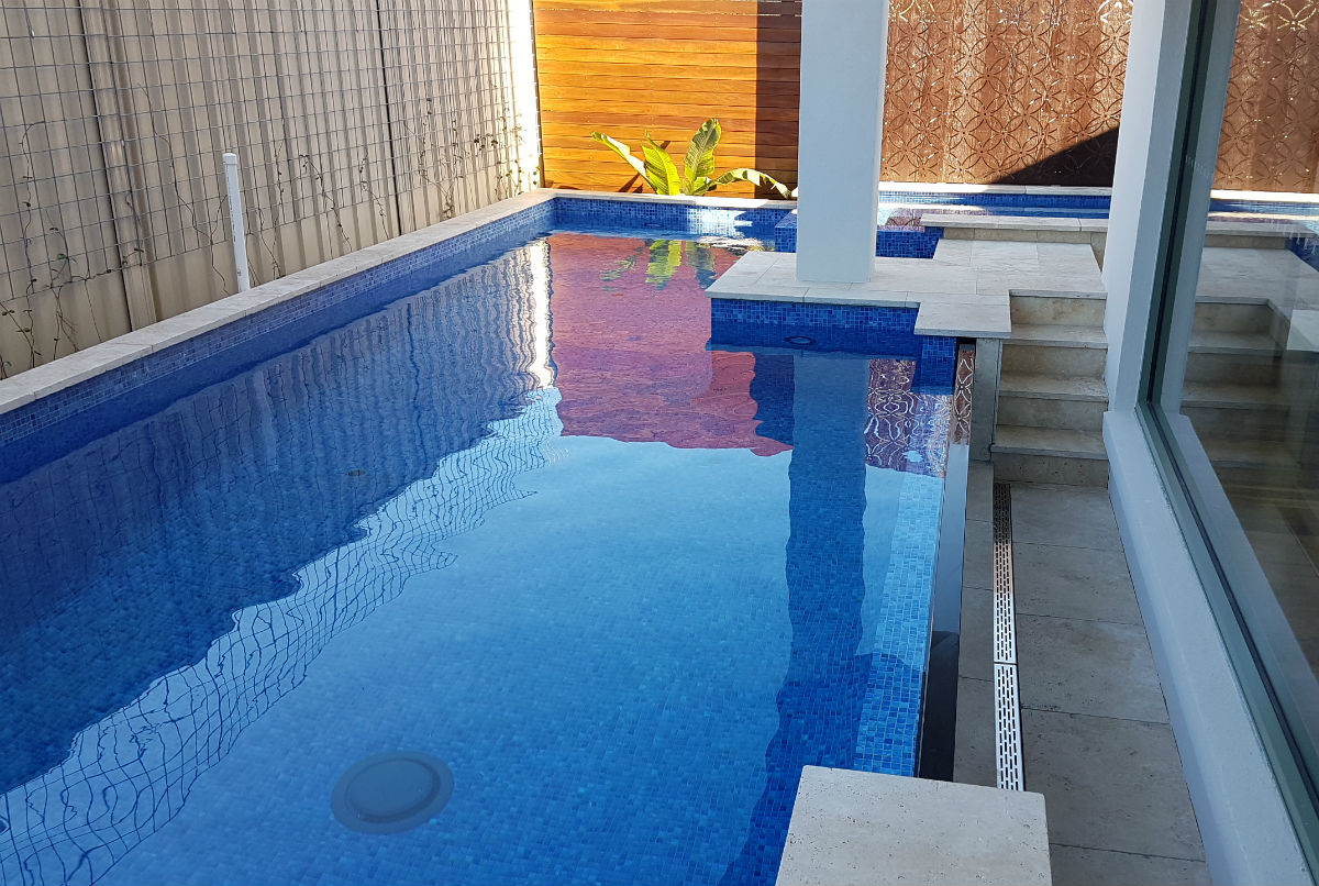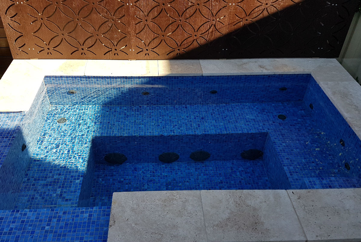 Aqua Mosaic tiles are face mounted with a specialised plastic film. We do not use any rear mounted systems such as mesh. This is because Australian Standards specify a minimum of 90% of the back surface of each glass tile must make full contact with the appropriate adhesive in order for it to be securely attached to the pool wall. With face mounting we can guarantee 100% back surface coverage.