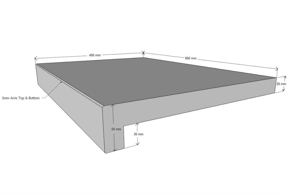 Bluestone Rebated Square Edge Coping, size 800x400x20 mm with a total dropface of 60 mm