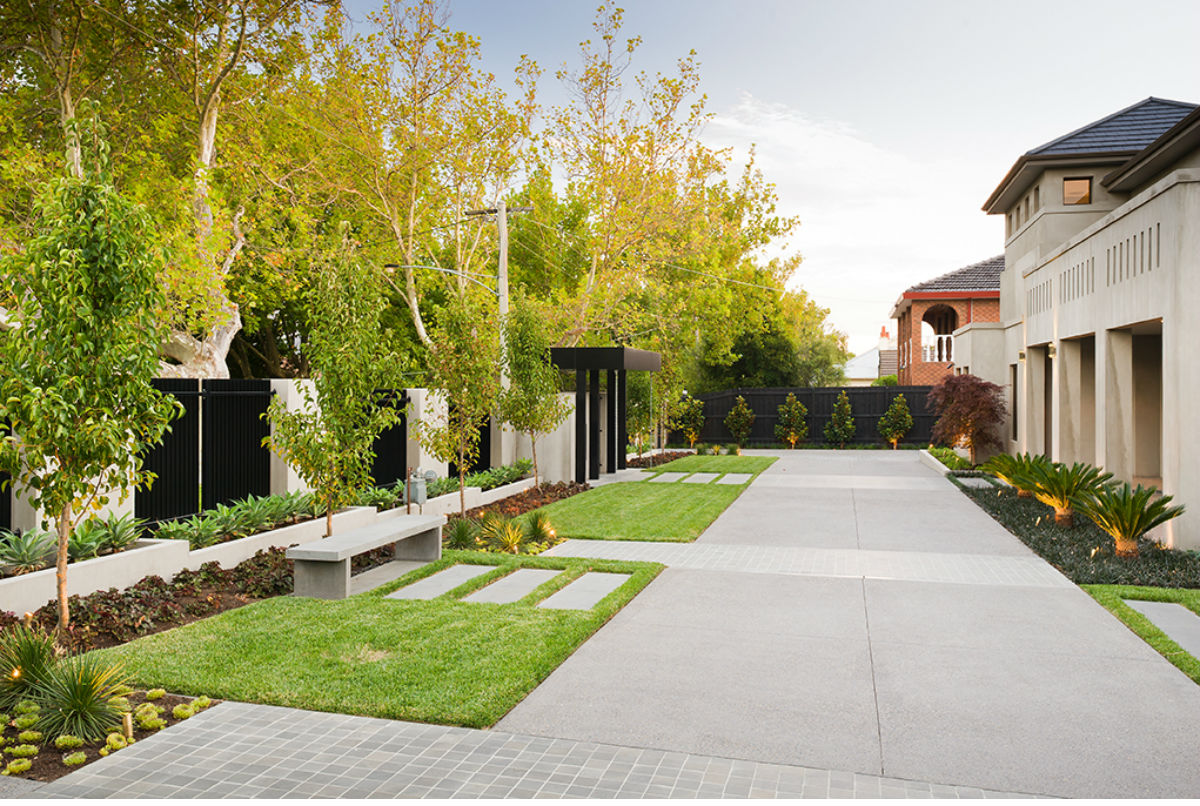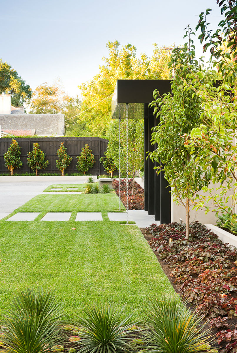 The urbane, pared back design of this contemporary landscape fits hand in glove with the minimalist architecture of the home and its distinctly modern interiors.